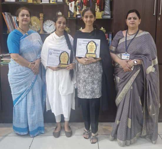 Principal Mrs. Ranju Mangal congratulated Saanvi and Jasleen, stating, "Your exemplary performance is a shining reflection of your erudition, eloquence and strong commitment to excellence."