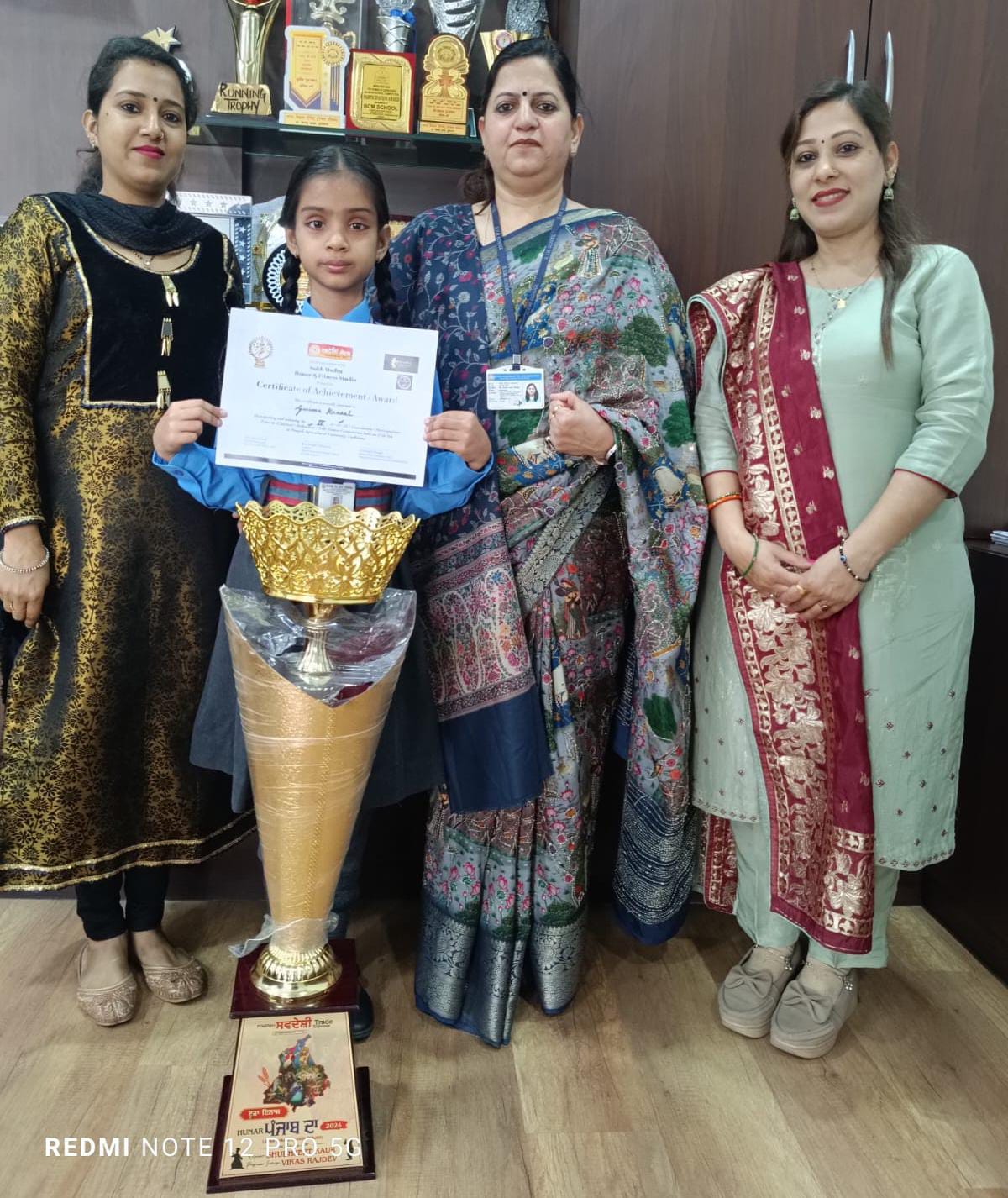 BVM Kitchlu Nagar’s Divyanshi has been crowned champion in a majestically high singing competition organized by All India Human Rights Organisation, Chandigarh. Deploying her exceptional vocal talent, she clinched first position after competing with 40 contestants across all age groups; 7 best singers were selected for the live finale held at Sector 44, D‑Market, Chandigarh, where she performed a judges‑choice song and was honored with a magnificent trophy and a cash prize of ₹5,100 for first position. Her mastery of melody and rhythm captivated judges and audience alike, securing the top spot.