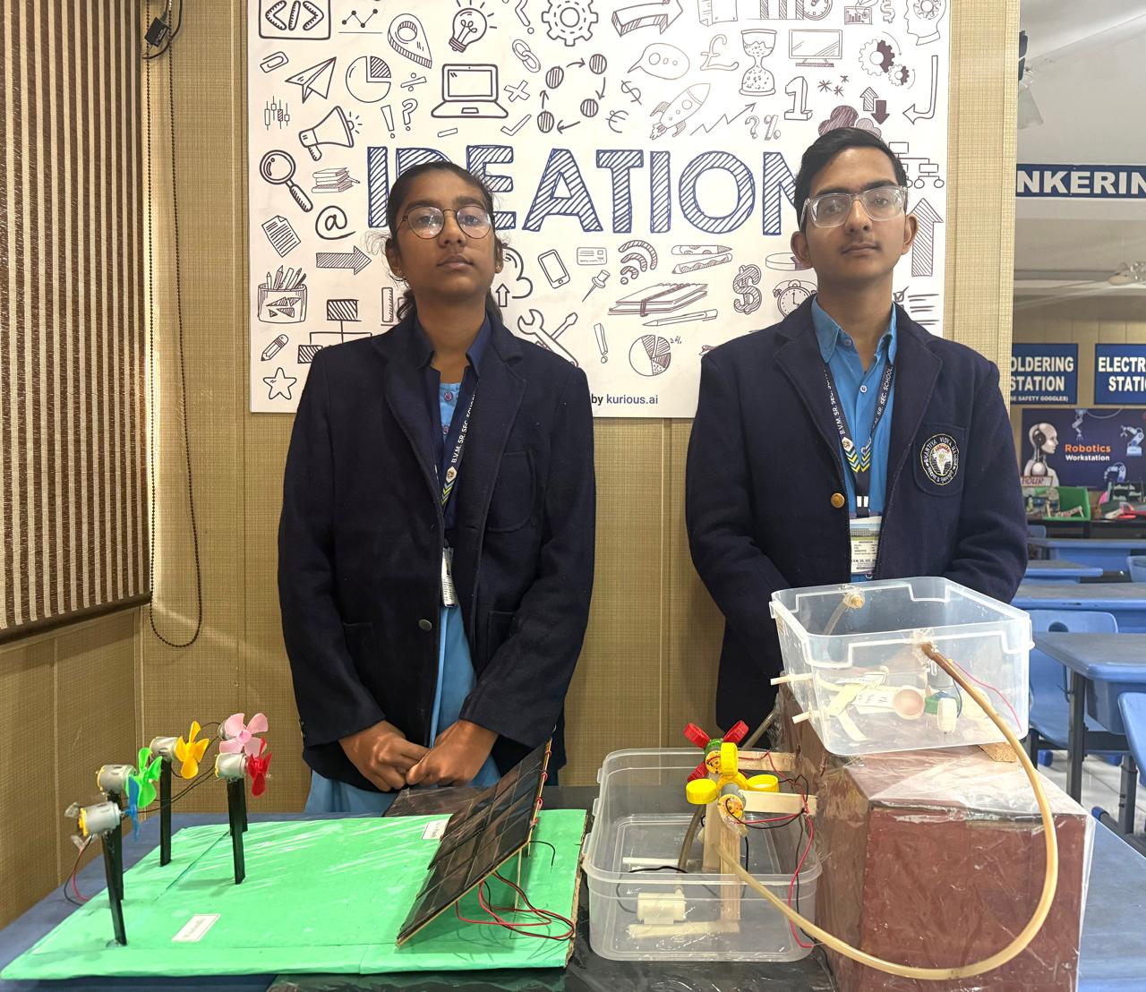 Erudite duo, Anant and Srishti, from Class 10th, have garnered recognition for their avant-garde model, HydroSpark, which has been judiciously selected among the Top 500 conceptualizations out of 2000 entries at the prestigious CBSE Youth Ideathon for exceptional ingenuity, acumen, and propensity for innovative problem-solving. Astute guidance and unwavering support from Mr. Satish Vashisht made it possible.